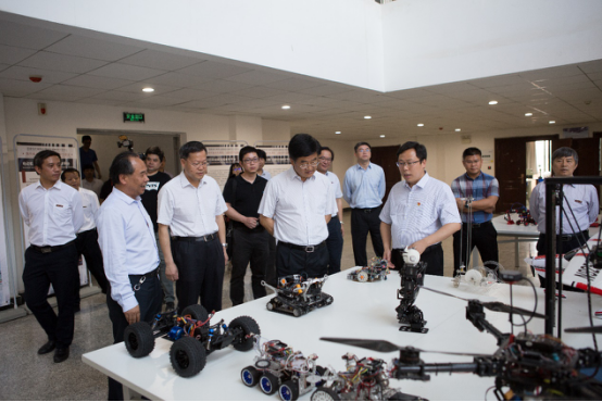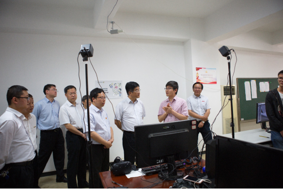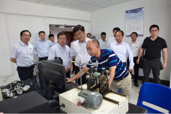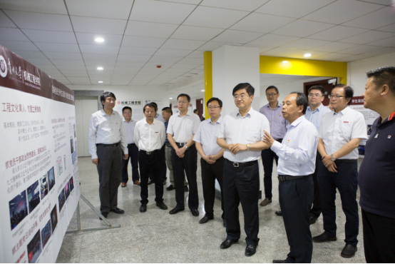 慕德貴一行詳細考察了我院科研工作情況,在考察“互聯網+”協同智能制造重點實驗室時,對學院推進互聯網、大數據、人工智能與實體經濟融合發展,服務“萬企融合”,開展工業大數據、智能制造技術研發及智能制造新模式應用,服務重點產業智能化轉型升級進行了鼓勵與肯定,并與教師和學生親切交談,討論航空航天、制藥、釀酒等重點行業智能制造新模式應用。并鼓勵:“多學習、求進步,努力提升教師學生政治思想素質,把優秀教師學生黨員的先鋒模范作用體現在科研和實踐上來。”