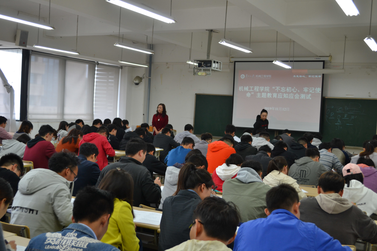 機械工程學院網站訊(記者 梁鵬飛 報道 攝影)11月12日中午,為深入學習貫徹習近平新時代中國特色社會主義思想和黨的十九大精神,及時檢驗學習成果,機械工程學院黨委在機械樓408、414、416教室開展“不忘初心、牢記使命”主題教育應知應會測試。