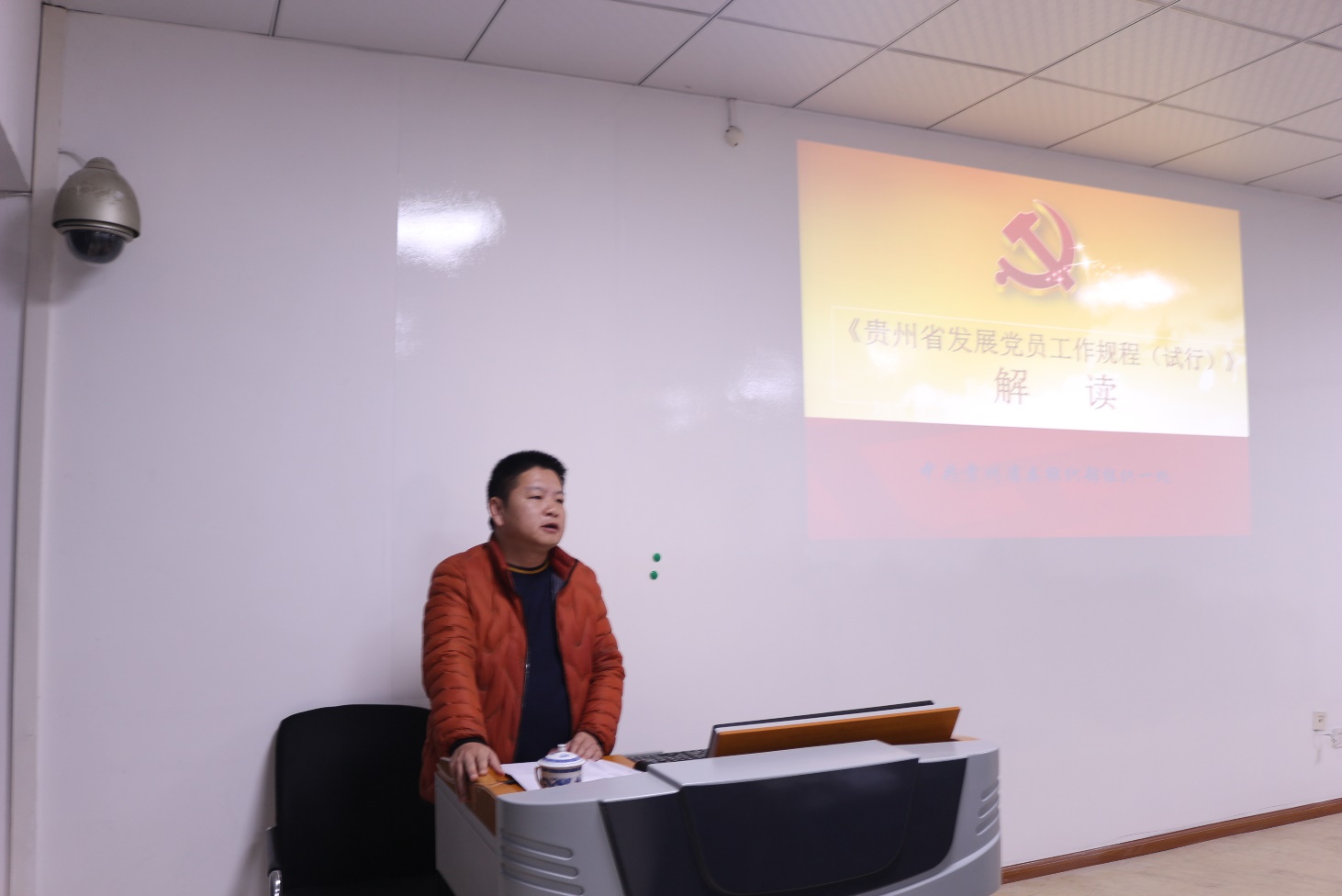 黨委副書記代祥社領學了《貴州省發展黨員工作規程(試行)》。代書記介紹了《規程》的幾項主要特點。他提出,學習《規程》是貫徹落實好中央關于發展黨員工作的要求,規范發展黨員工作的必要要求,支部黨員干部必須全面透徹了解黨員發展工作的具體程序,確保發展黨員工作更加規范。