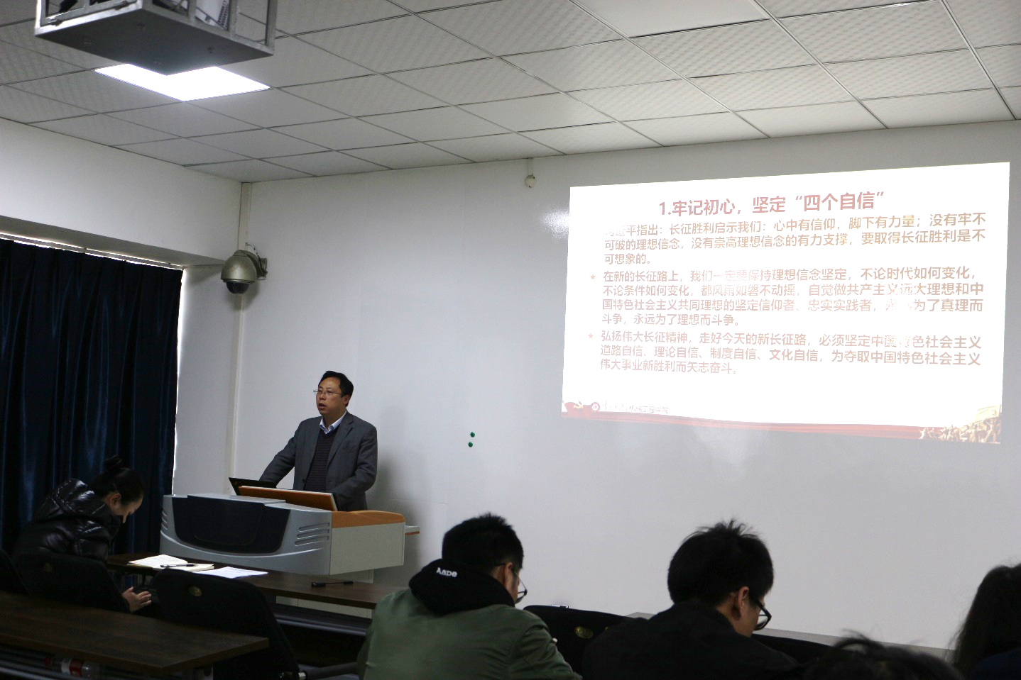李少波院長進行了“不忘初心、牢記使命,弘揚長征精神,艱苦奮斗勇往直前,沖擊學科發展新高地”主題授課。他提出,我們黨員同志要不忘初心,在新的征程路上,弘揚長征精神,積極擔當作為。一是要牢記初心堅定“四個自信”;二是要堅持實事求是認真踐行“三嚴三實”的作風;三是要發揚無私無畏敢于擔當的英雄主義;四是要忠實踐行宗旨和黨的群眾路線;五是要強化“四個意識”堅決維護黨的團結統一;六是要大力弘揚艱苦奮斗勤儉節約的光榮傳統;七是要始終堅持中國共產黨的領導。新時代開啟新征程,新征程呼喚新擔當新作為。我們要以高度的政治責任感和歷史使命感,抓好擔當作為的落實落地;要弘揚長征精神,艱苦奮斗勇往直前,追求一流,沖擊學科發展新高地。