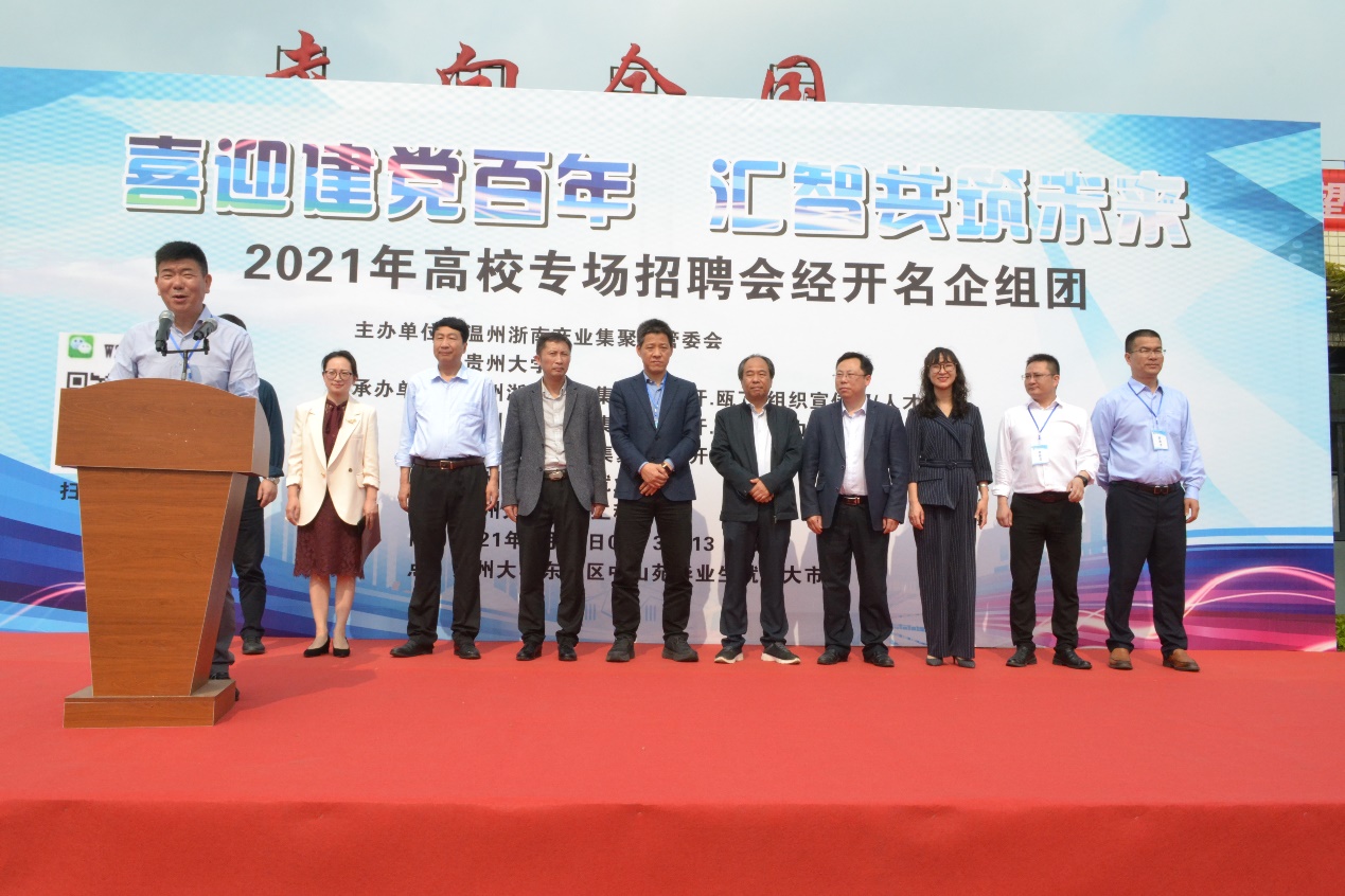 啟動儀式上,貴州大學招生就業處主要負責人王忠於致辭。他首先介紹了貴州大學及機械工程學院的相關情況,他指出,貴州大學是部省合建和“雙一流”高水平大學,機械工程學院擁有國家級和省級特色重點學科,具有現代制造技術教育部重點實驗室、全國高校實踐育人創新創業基地,是國家機械工程類培養了大量高層次人才。希望借助此次活動,浙南沿海先進裝備產業集聚區各企事業單位能在貴州大學招收到大量的優秀人才。