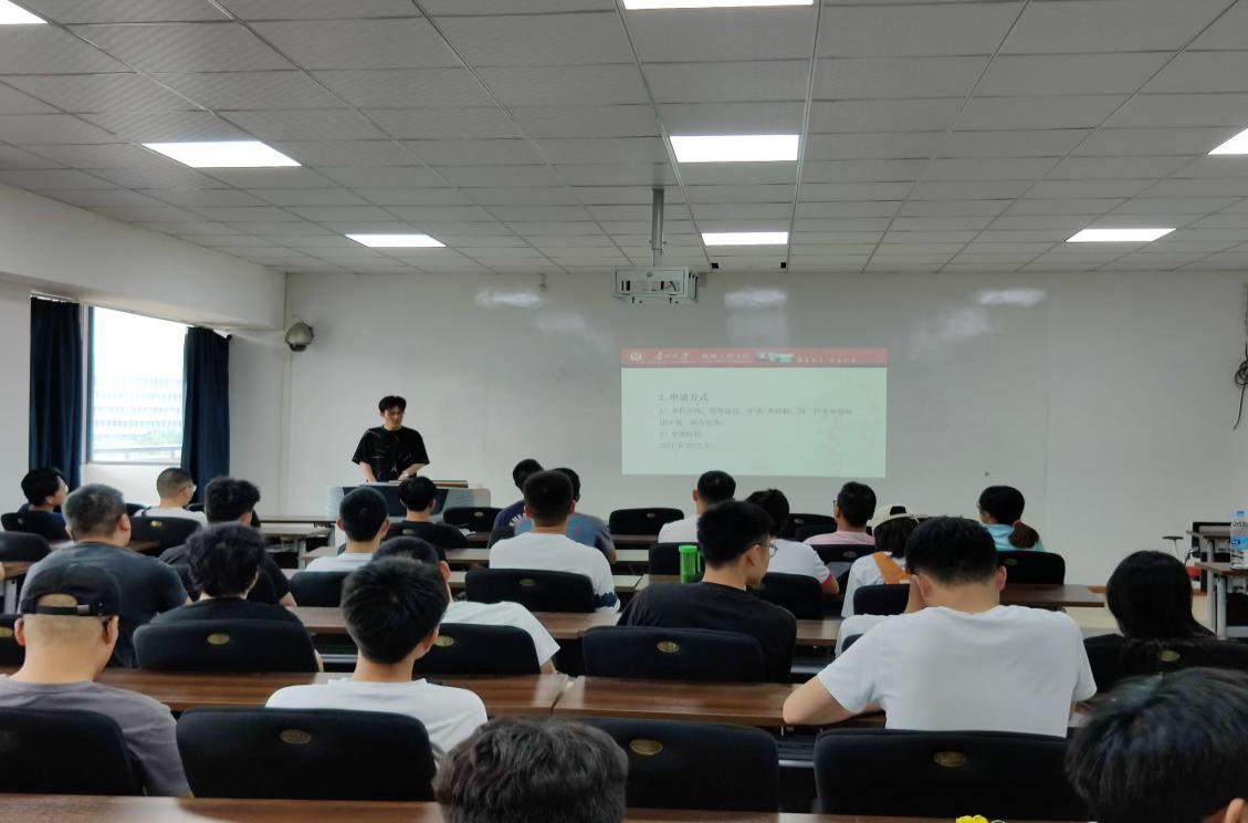 胡小龍,系學院機械工程專業學生,現已成功考取湖南大學博士,在校期間發表論文三篇,申請專利3項。他從申博過程中申請、交流、面試、錄取四個階段以“申博過程中可能遇到的問題及對策”為主題進行了分享。他表示,在申請讀博士的過程中首先要明確方向和研究領域,其次根據自身實際情況選擇導師,同時,要做好申博的相關準備工作,在申請成功之后要定期與老師保持溝通,匯報相關的科研進度等。