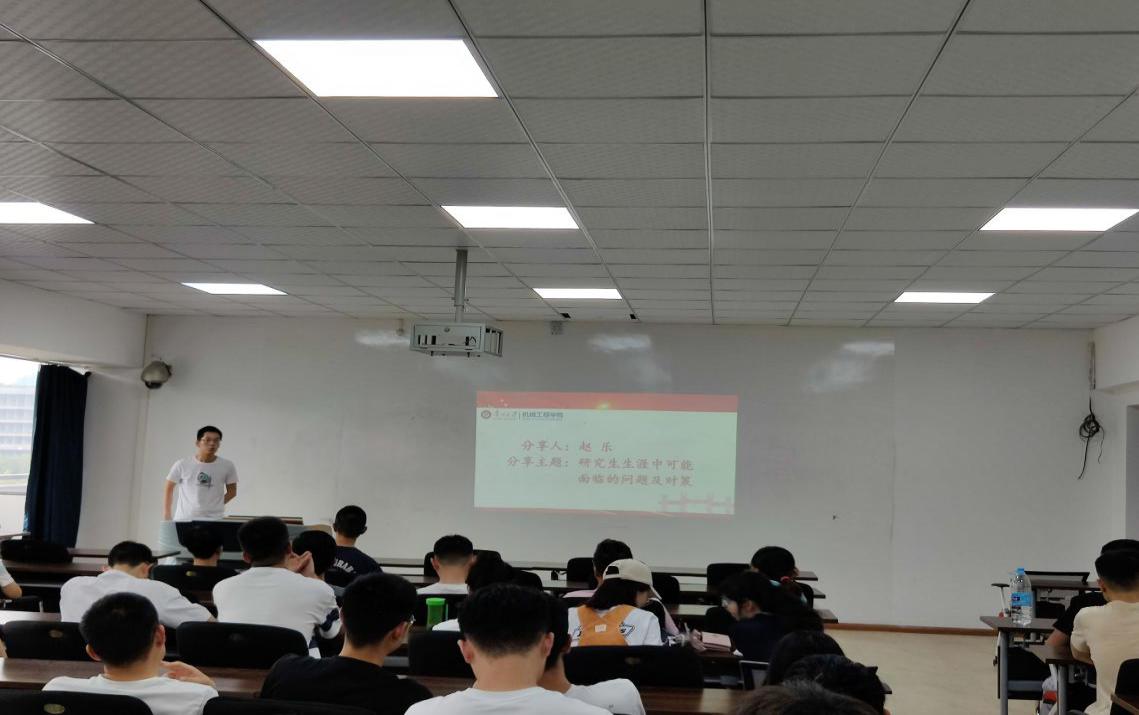 機械工程網站訊(記者 袁 銀|攝影 陳世婕)光陰荏苒,歲月如梭,又是一年畢業季。2021年6月21日,機械工程學院邀請了胡小龍、趙樂、李中益三位畢業生在機械樓416教室分別從考博、科研、就業三個方面開展了畢業生分享會,全體研究生參加會議。