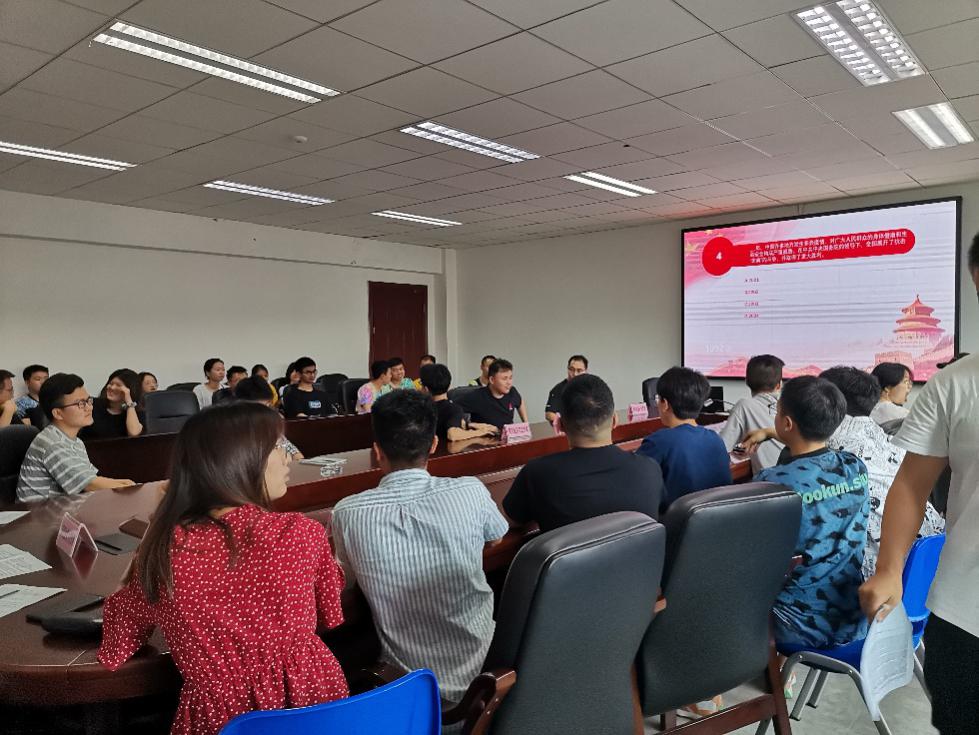 在準備階段,組織了全體研究生和本科生黨員開展了賽前學習。比賽現場分為必答和搶答兩個環節。在必答環節。經過賽前對黨史知識的學習,各參賽支部需隨機回答五道黨史題來檢驗學習成果,并由工作人員現場核對答案,得出必答環節的占比成績。在搶答環節中,各支部五人為1組,搶答共30題,答對得分,答錯扣分。