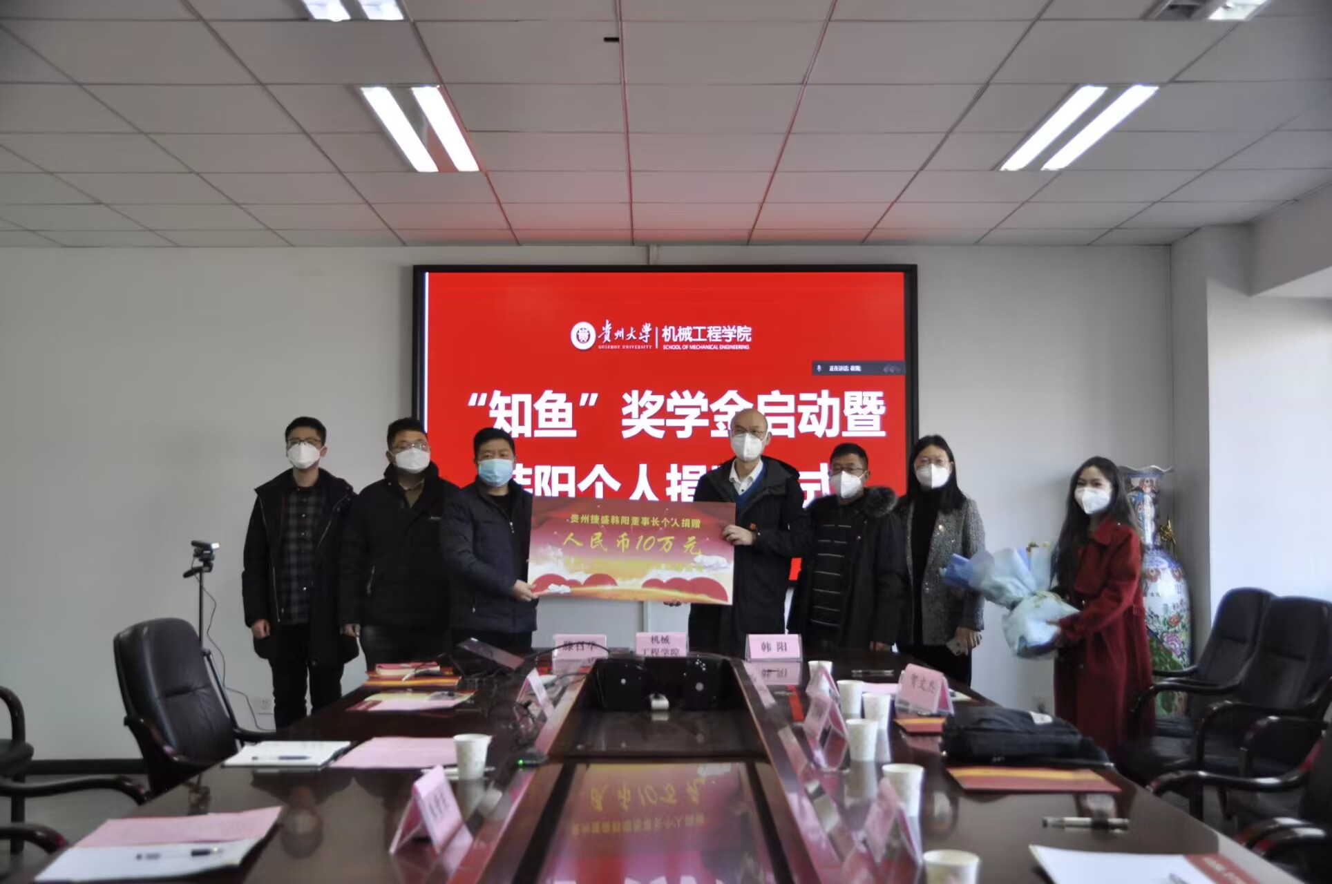 2022年12月21日上午10時,貴州大學機械工程學院聯合貴州捷盛鉆具股份有限公司在518會議室舉辦了“知魚”獎學金啟動暨韓陽個人捐贈儀式。院黨委書記滕召華、院長趙津、副院長何峰、科研與對外合作辦主要負責人、各專業系室中心主任,學生代表出席了本次捐贈儀式。