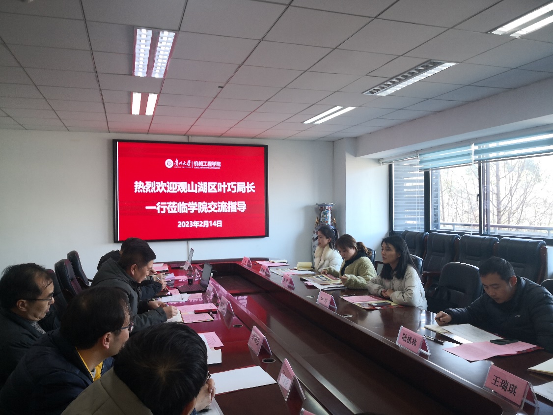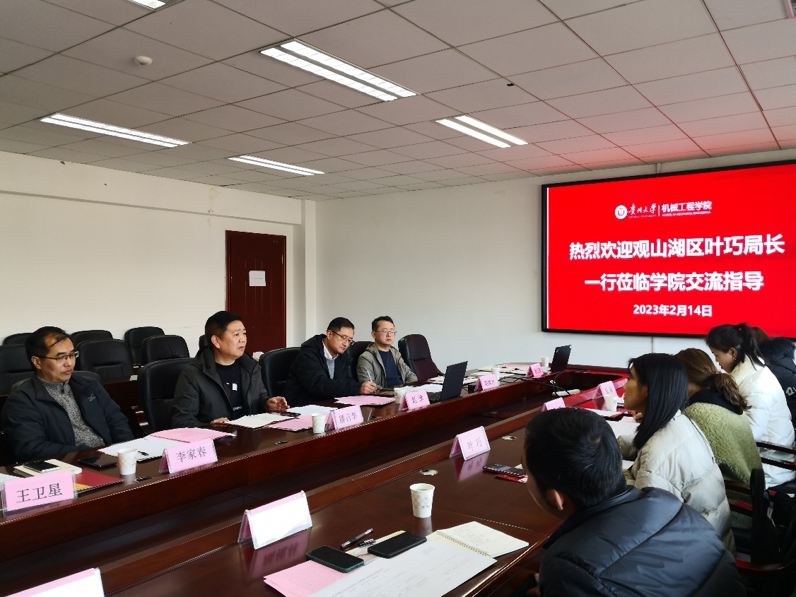 2023年2月14日下午,貴州大學(xué)機械工程學(xué)院與貴陽市觀山湖區(qū)科學(xué)技術(shù)局、觀山湖區(qū)工業(yè)和信息化局、觀山湖區(qū)人力資源和社會保障局在機械樓518會議室舉行合作交流會議。觀山湖區(qū)科學(xué)技術(shù)局黨組書記、局長葉巧,觀山湖區(qū)工業(yè)和信息化局企業(yè)管理服務(wù)科陸植林科長,觀山湖區(qū)人力資源和社會保障局就業(yè)服務(wù)科李昕科長等出席了會議。機械工程學(xué)院黨委書記滕召華、機械工程學(xué)院趙津院長、李家春副院長,以及各系室主任和青年教師代表參加了會議。