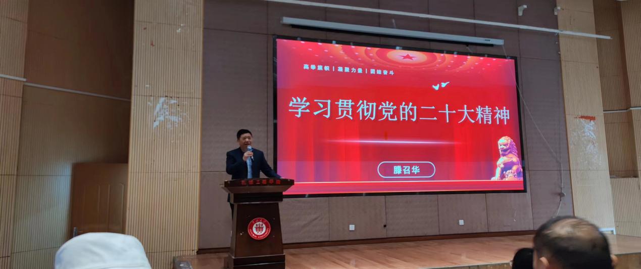 黨委書(shū)記滕召華對(duì)黨的二十大精神進(jìn)行了詳細(xì)解讀,強(qiáng)調(diào)師生黨員要深入學(xué)習(xí)、深刻領(lǐng)悟黨的二十大精神,在學(xué)深悟透中切實(shí)把思想和行動(dòng)統(tǒng)一到黨的二十大決策部署上來(lái)。