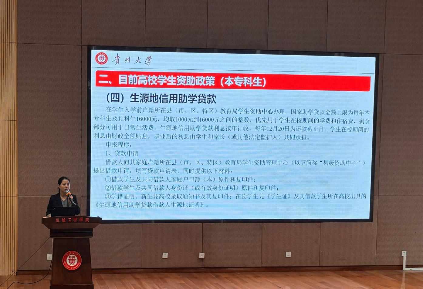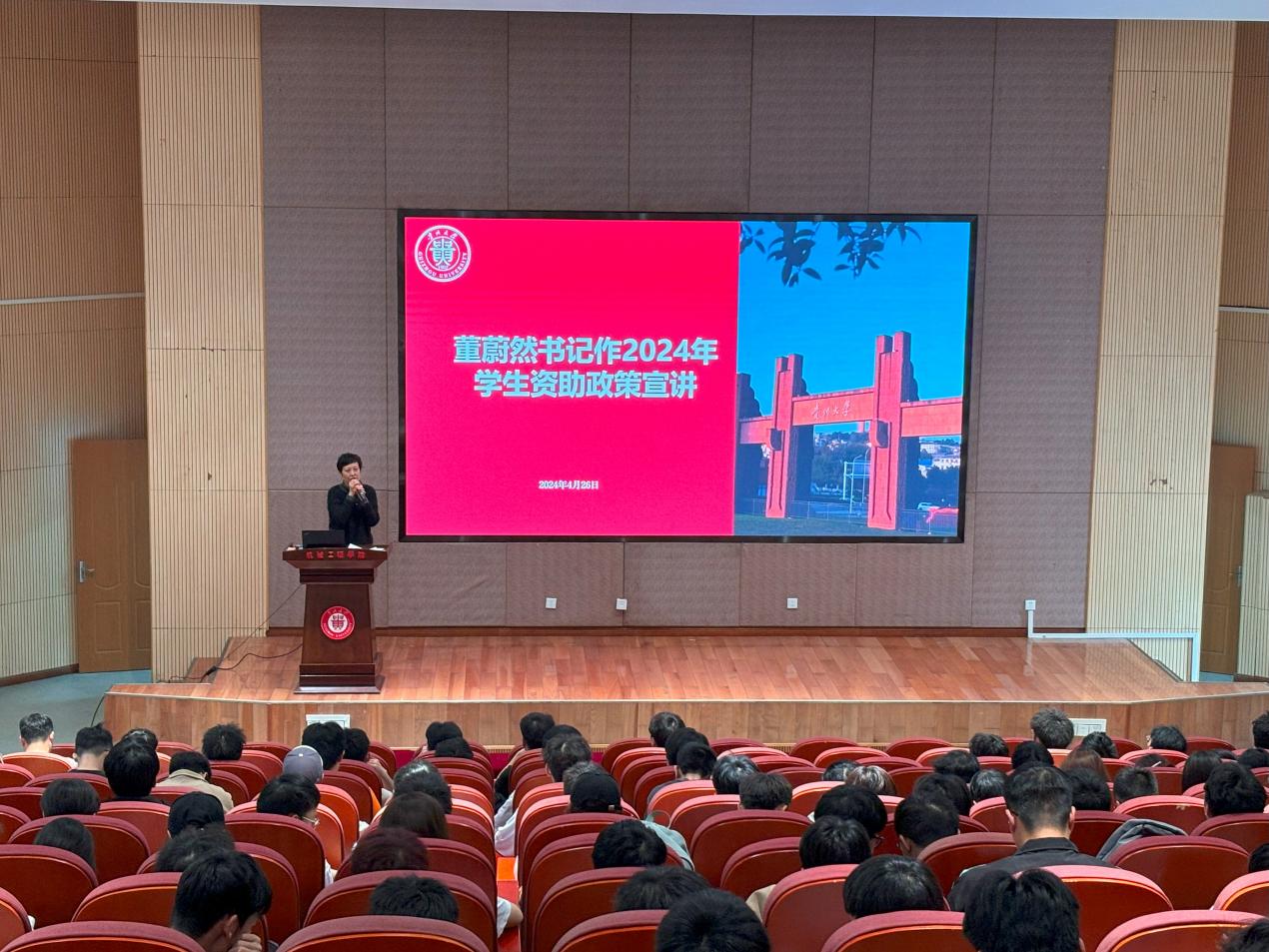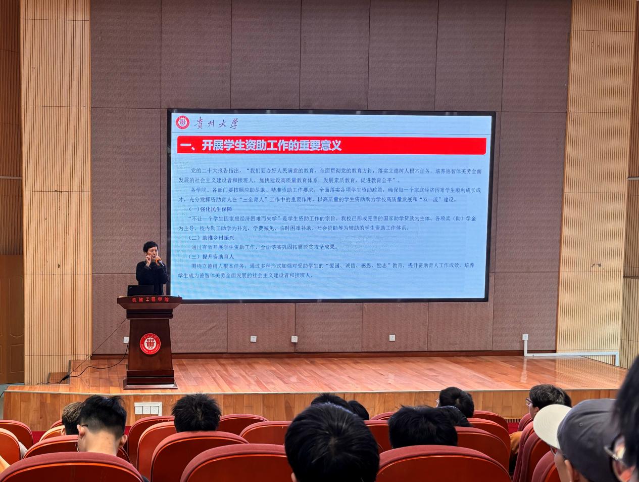 活動伊始,董蔚然同志發表了熱情洋溢的致辭,從開展學生資助工作的重要意義、目前高校學生資助政策、貴州大學學生資助體系及學生受助情況、開展學生資助工作、如何凸顯資助育人成效5個方面向同學們進行宣講。她強調了資助政策對于促進教育公平、助力學生成長的重要意義,并鼓勵學生們積極了解政策、申請資助,為自己的未來發展打下堅實的基礎。