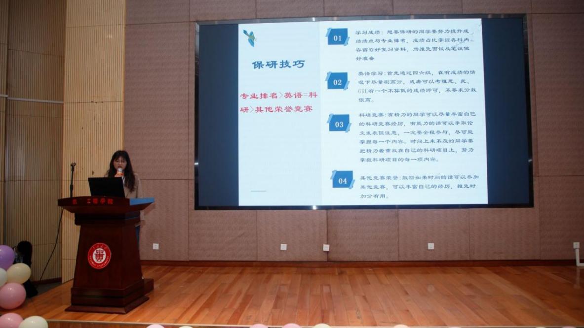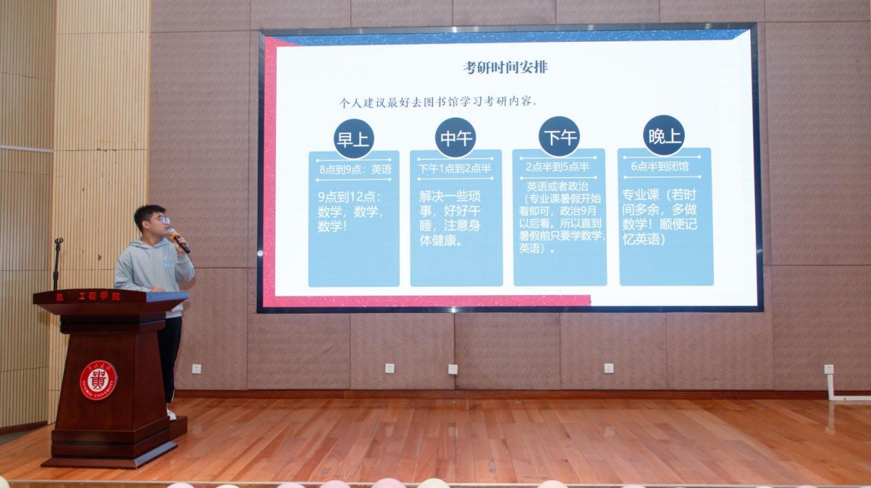 大會邀請材料成型及控制工程系保研學生王倩、考研學生韓池從選擇定位、計劃安排、學習方法等方面作升學經驗分享,希望學弟學妹研途不迷茫,持之以恒做好備考準備,全力以赴戰到考研最后一刻。