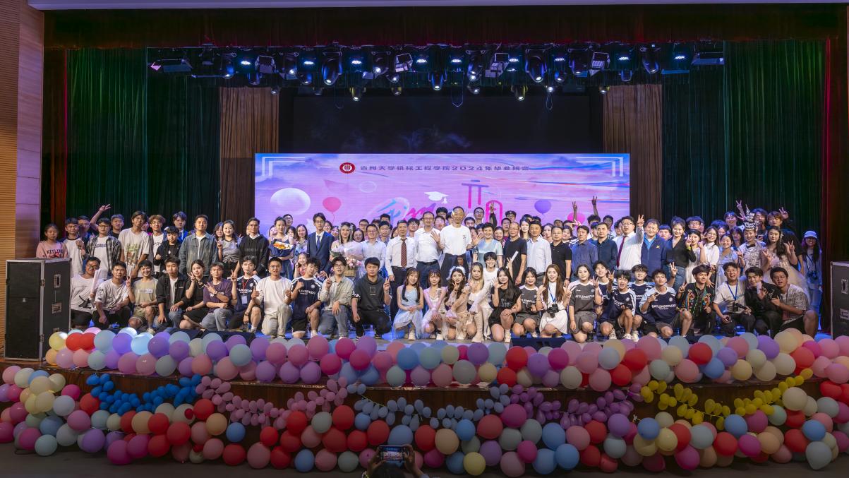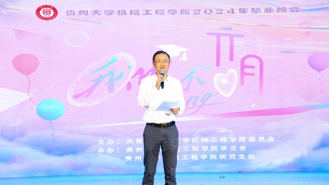 機械工程網站訊(記者 鄭欣然|攝影 鐘奎)2024年6月2日晚,貴州大學機械工程學院“六月,我們不一young”主題畢業晚會在音樂學院實驗劇場順利舉行,院黨委書記滕召華、院長趙津、正處級組織員董蔚然、黨委副書記廖燁、副院長唐正強、各科室系主任、老師和畢業生們一起共赴這場告別青春的盛宴。本次晚會由于麗婭、林磊、劉芳君、陶政宇、李亨丞、王凱主持。