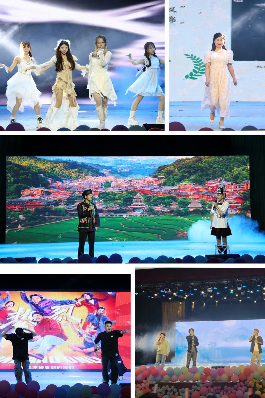 伴隨著熱烈的氣氛,晚會來到最后一個篇章《祝福》,律動十足的街舞表演將氛圍推向高潮,緊接其后的《教師風采秀》展現了老師們不同一面,由研究生帶來的民族表演《歡迎您到侗寨來》讓觀眾感受到侗族文化的魅力,觀眾們紛紛上臺手牽手圍著圈伴隨著嘹亮的侗族歌聲起舞,享受著快樂熱烈的時光。