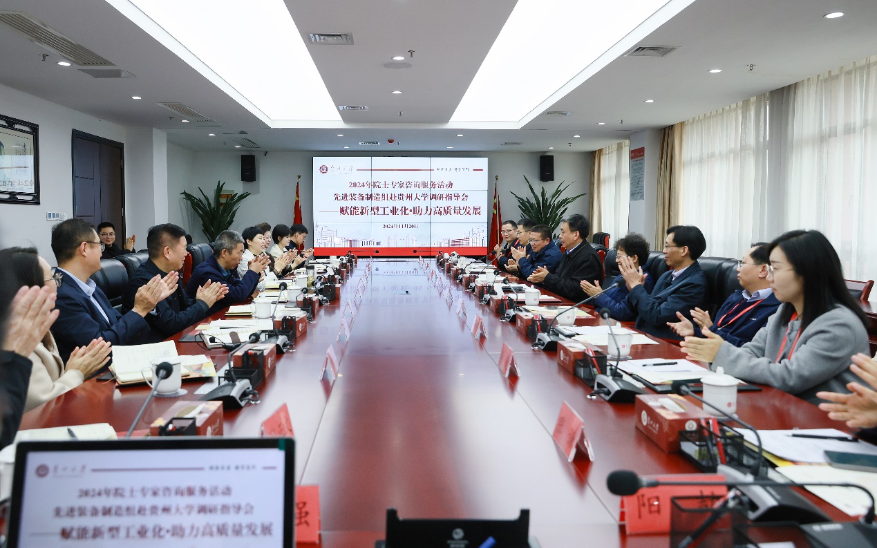 11月20日上午,2024年院士專家咨詢服務(wù)活動——先進裝備制造組赴貴州大學(xué)調(diào)研指導(dǎo),以“賦能新型工業(yè)化,助力高質(zhì)量發(fā)展”為主題進行交流研討。