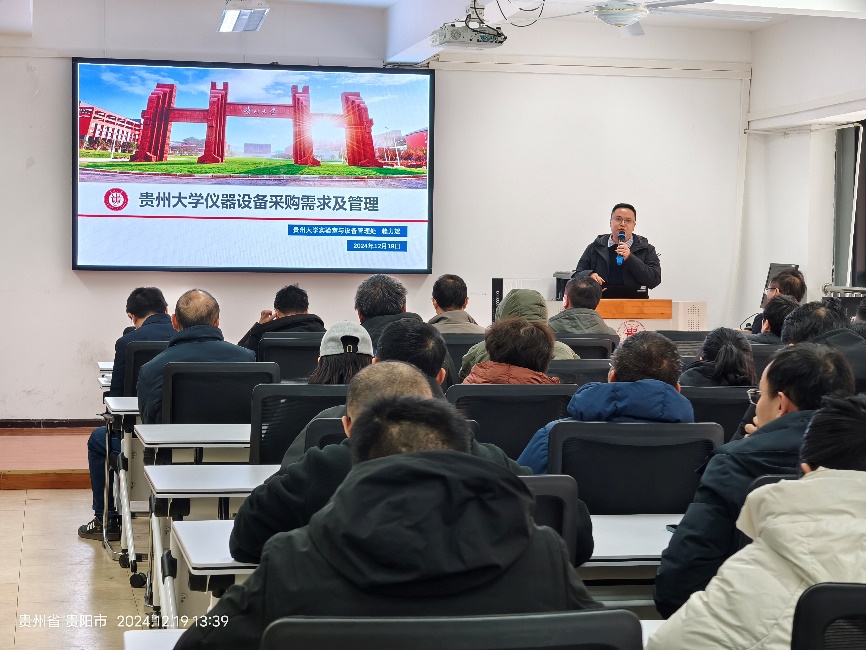 20241219日下午,機械工程學院邀請我校實驗室與設備管理處賴力斌副處長、何霽峰老師一行蒞臨我院指導工作,開展“貴州大學儀器設備采購需求及管理”專題培訓,會議由學院黨委書記滕召華主持,我院全體教職工參加。