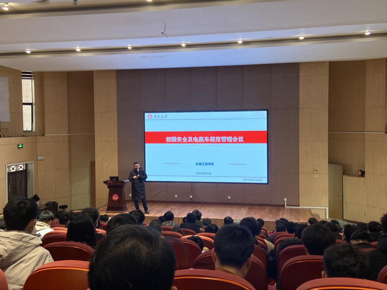 為了加強(qiáng)校園交通文明建設(shè),營造安全、有序、整潔的校園環(huán)境,2025年3月7日下午1點(diǎn)機(jī)械工程學(xué)院在學(xué)院圓形報告廳召開了校園安全及電瓶車規(guī)范管理會議,會議由研究生科田森老師主持,全體研究生參加會議。