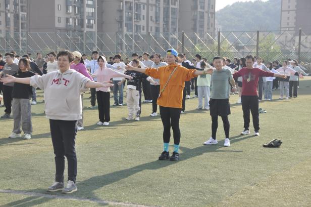 董蔚然宣布體質提升工作小組成員名單,強調體育鍛煉的重要性。體育學院唐瑞珠老師代表體質提升組發言,鼓勵大家按照體質提升指導方案按時參加體育鍛煉。隨后,在學生代表李亨丞的帶領下,同學們進行集體宣誓。跑步開始前,唐瑞珠老師帶領師生們一起做熱身運動,在跑步環節,男女分組依次起跑,教師也參與其中,學院師生在操場上揮灑汗水,營造了良好的運動氛圍。