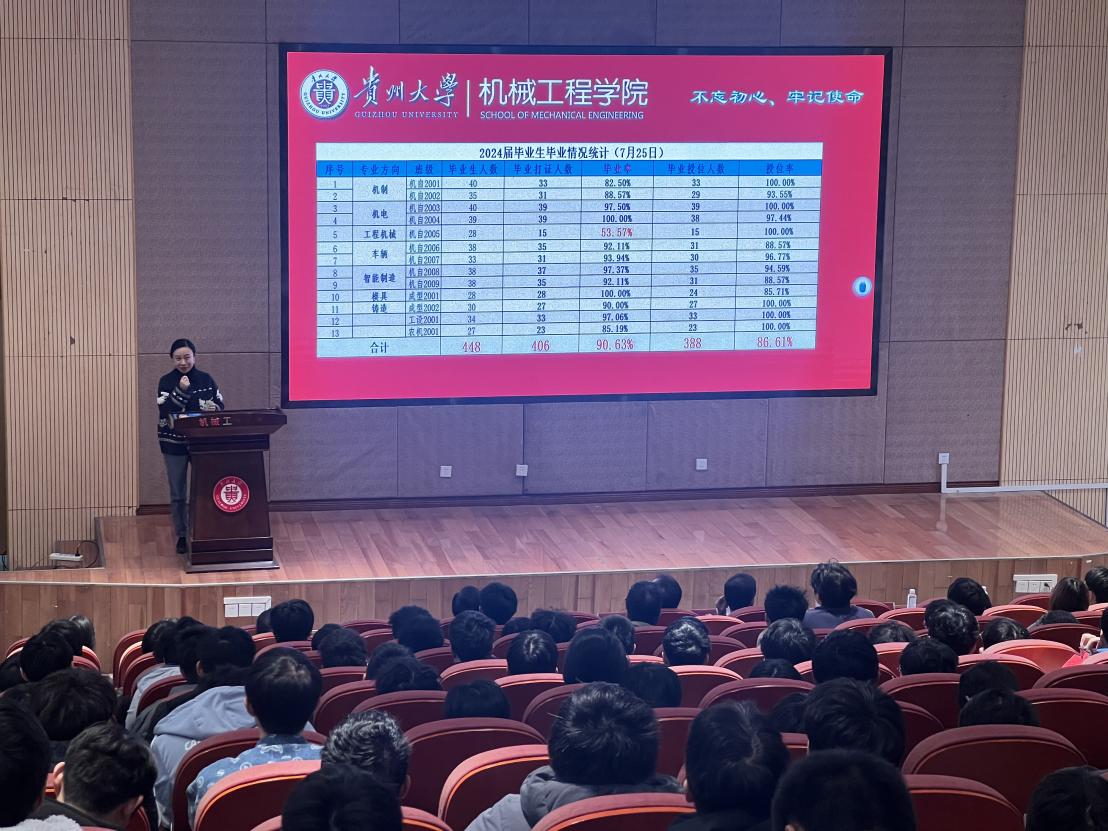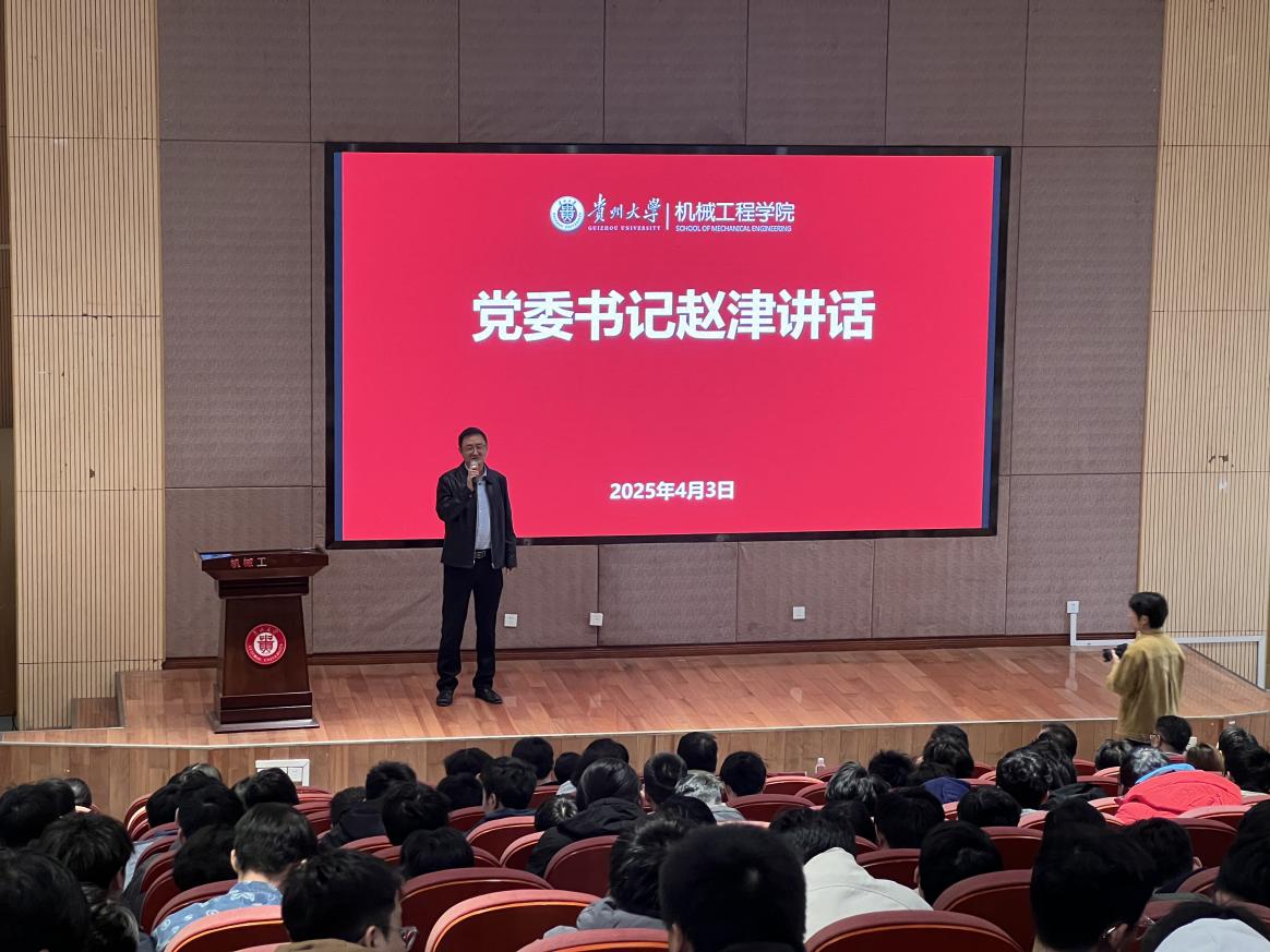 為幫助大三學生明確未來方向,合理規劃學業與職業發展,4月3日,機械工程學院在圓形報告廳召開了2022級本科生年級大會。此次大會聚焦考研動員、出國留學、入伍以及就業政策解讀,為同學們答疑解惑,指引前行方向。學院黨委書記趙津、正處級組織員董蔚然、副院長李家春、副院長唐正強出席,外國語學院樊章俊老師、學院教務科陳馨老師以及2022級全體同學參加。