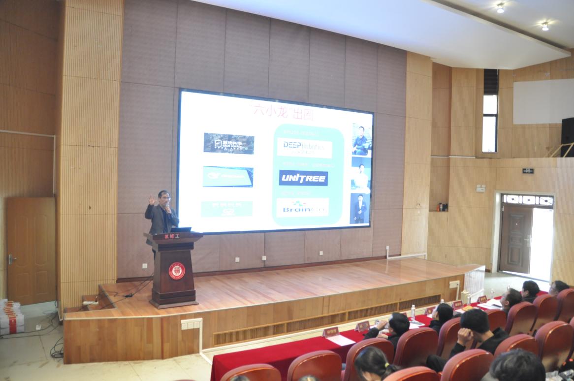 李家春以“杭州六小龍”火爆出圈的例子,一段機器人在復雜地形運動并做出高難度動作的視頻,引出機械專業在未來的發展前景,隨后以學院近兩年考研數據的對比,向同學們強調選修博學數學、英語的重要性,鼓勵動員同學積極備考升學,選修學校組織開展的博學英語、數學課。