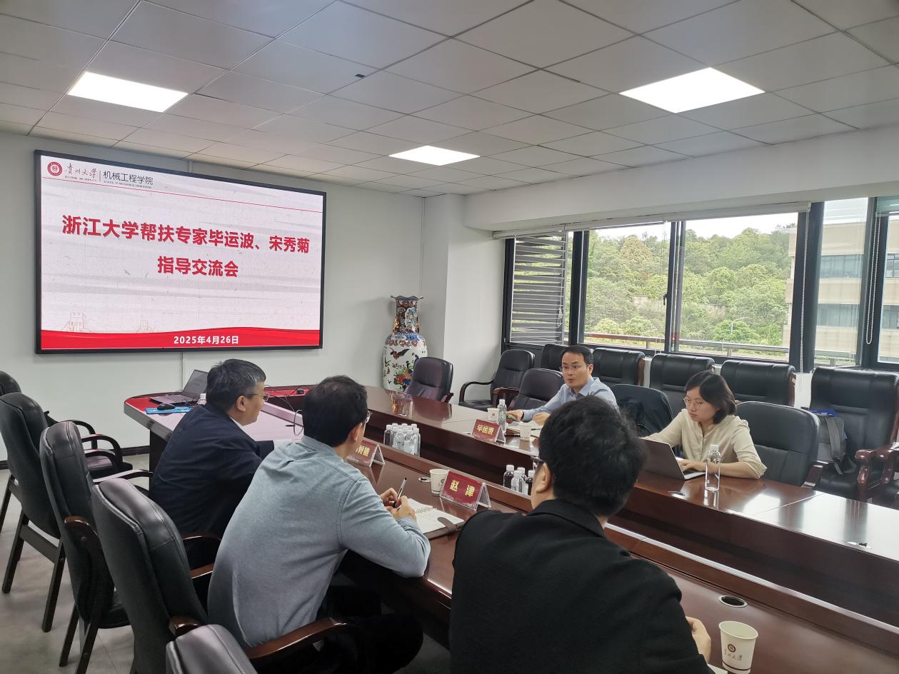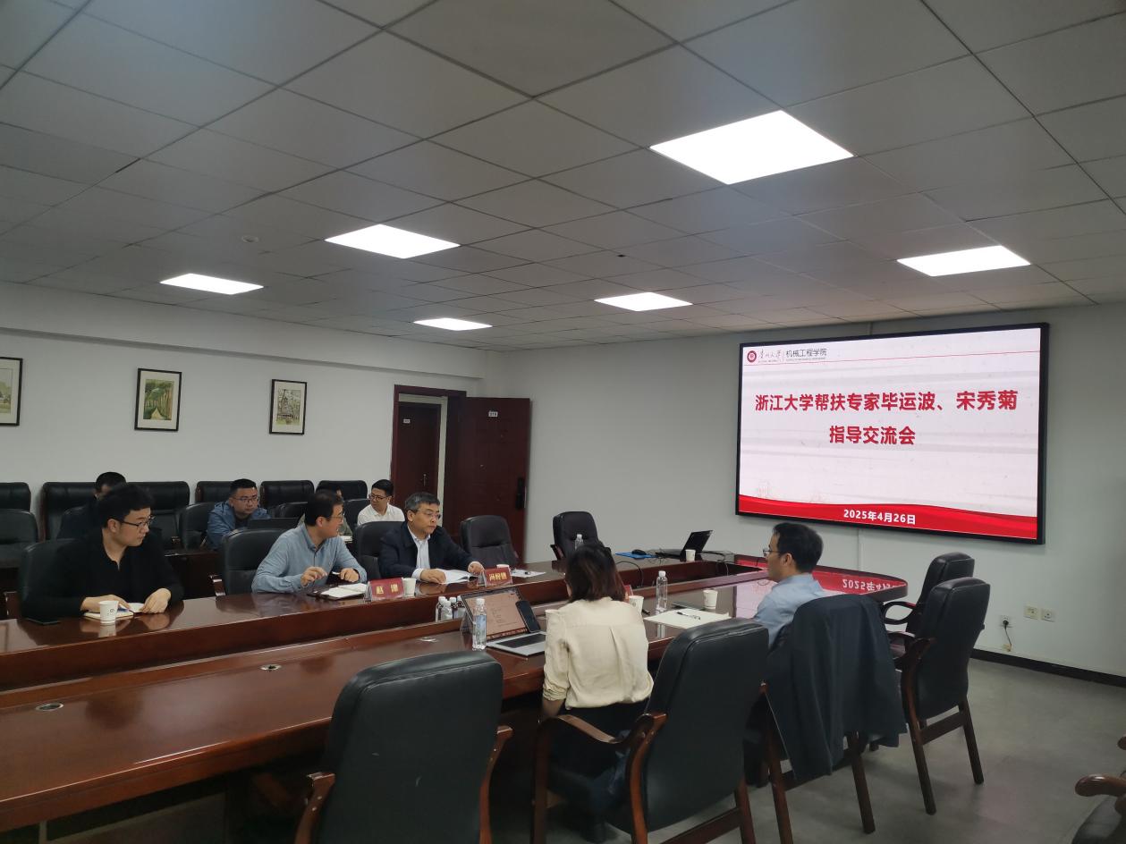 為深入貫徹落實省委省政府關于深化東西部協作和新時代高校對口幫扶工作的重要指示精神,2025年4月26日下午,浙江大學機械工程學院對口幫扶專家畢運波教授、宋秀菊研究員一行赴貴州大學機械工程學院開展指導交流。活動由貴州大學機械工程學院黨委書記趙津主持,浙江大學幫扶專家組組長、國家級人才稱號獲得者馮毅雄及學院青年教師代表吳家柱、汪???、杜昊、漆令飛、陳躍威等10余人參與座談交流。