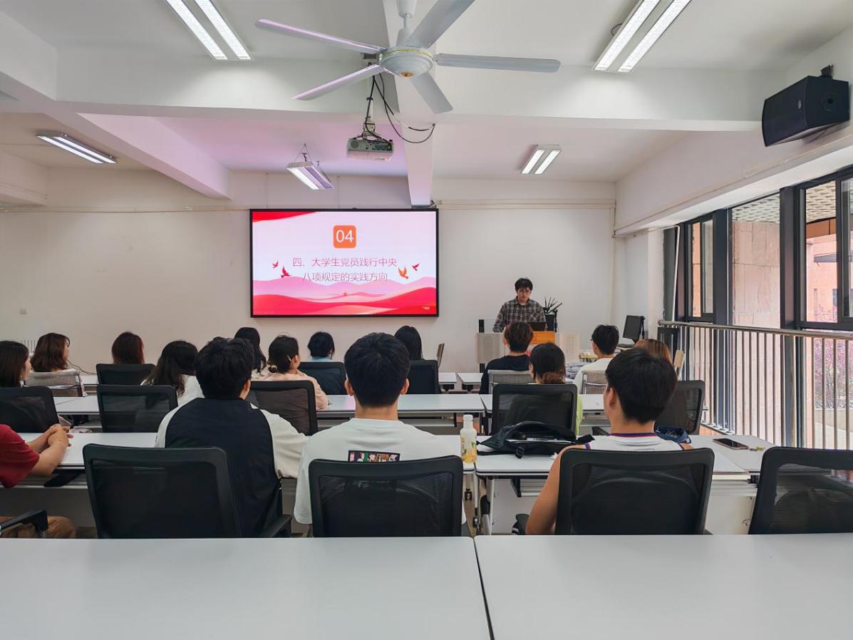 學(xué)生科趙麗芳老師帶領(lǐng)同學(xué)們深入學(xué)習(xí)中央八項(xiàng)規(guī)定出臺(tái)的相關(guān)背景、主要內(nèi)容和重要意義,引導(dǎo)同學(xué)們思考如何將中央八項(xiàng)規(guī)定融入到學(xué)習(xí)和生活中。學(xué)生黨員雷繽演結(jié)合自己的學(xué)習(xí)、生活和做學(xué)生干部工作的體會(huì)和感受,號(hào)召同學(xué)們要積極踐行中央八項(xiàng)規(guī)定。在學(xué)習(xí)上杜絕抄襲拼湊,認(rèn)真開展實(shí)驗(yàn),用真實(shí)的數(shù)據(jù)進(jìn)行論證,在學(xué)科競(jìng)賽上要勇攀高峰,提高創(chuàng)新能力和動(dòng)手能力;在生活上,要踐行勤儉節(jié)約,堅(jiān)持“光盤行動(dòng)”、樹立理性消費(fèi)意識(shí),不鋪張浪費(fèi);在學(xué)生工作上,開展活動(dòng)提前做好詳細(xì)的規(guī)劃和預(yù)算,避免超支浪費(fèi),合理利用學(xué)校現(xiàn)有的場(chǎng)地和設(shè)備,減少不必要的開支,在與同學(xué)溝通交流時(shí),摒棄官僚作風(fēng),真心實(shí)意為同學(xué)服務(wù),提高工作效率,切實(shí)解決同學(xué)們?cè)趯W(xué)習(xí)和生活中遇到的實(shí)際問題。