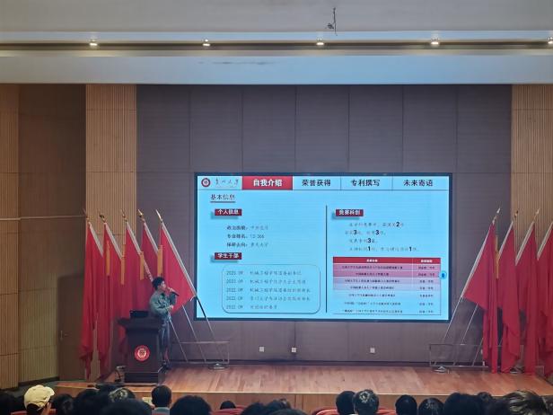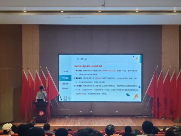 榜樣領(lǐng)航,傳遞奮進(jìn)力量。經(jīng)驗(yàn)分享環(huán)節(jié),唐雍、俞天鑫、杜立杰、王占坤、米小紅5名國家獎(jiǎng)學(xué)金獲得者依次上臺,圍繞學(xué)業(yè)規(guī)劃、科研創(chuàng)新、競賽經(jīng)驗(yàn)、時(shí)間管理、社會實(shí)踐等方面分享有關(guān)經(jīng)驗(yàn)與感悟。他們講述了自身在專業(yè)學(xué)習(xí)中攻克難題的經(jīng)歷,鼓勵(lì)同學(xué)們主動(dòng)探索、勇于嘗試,現(xiàn)場同學(xué)認(rèn)真聆聽,紛紛表示收獲頗豐。