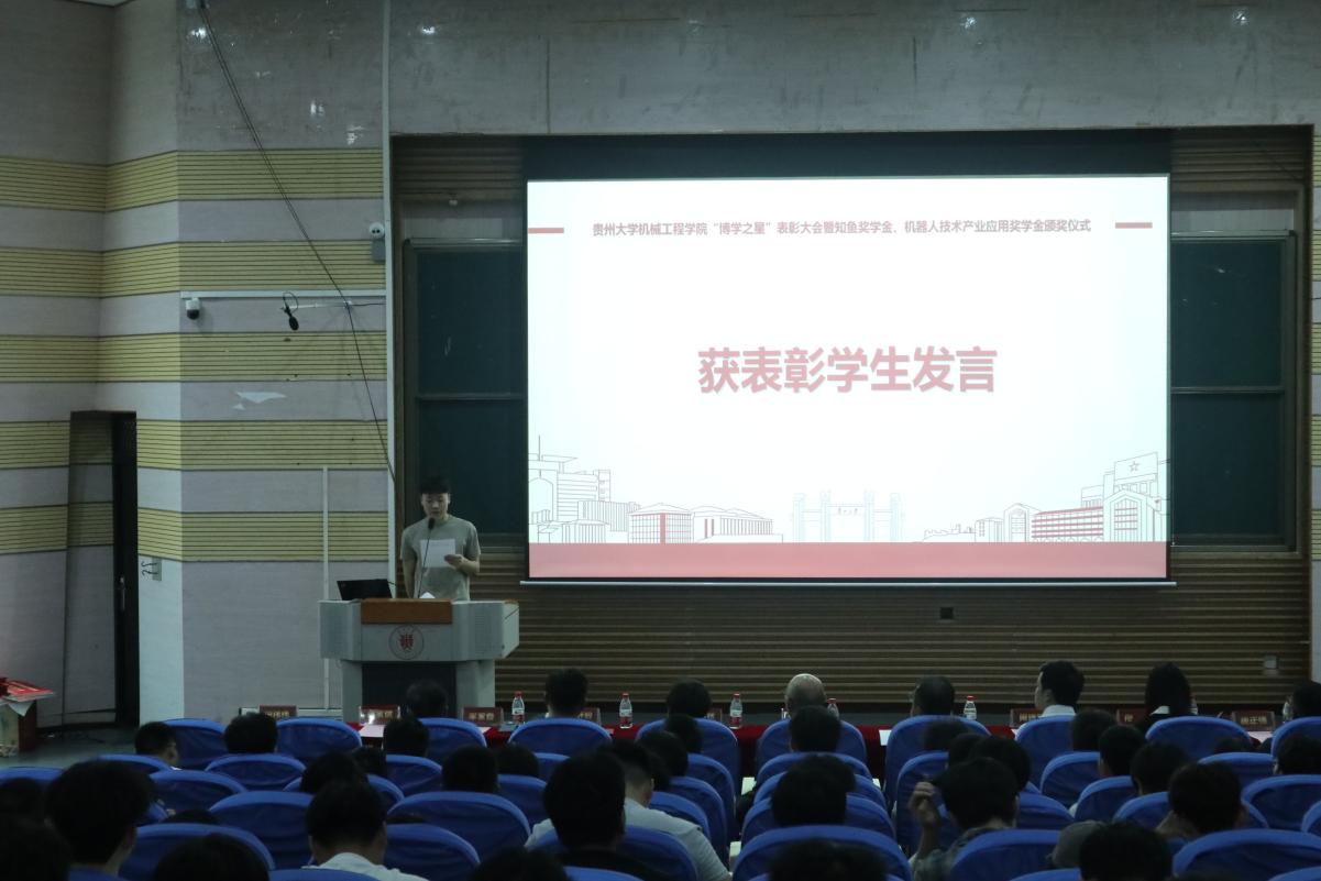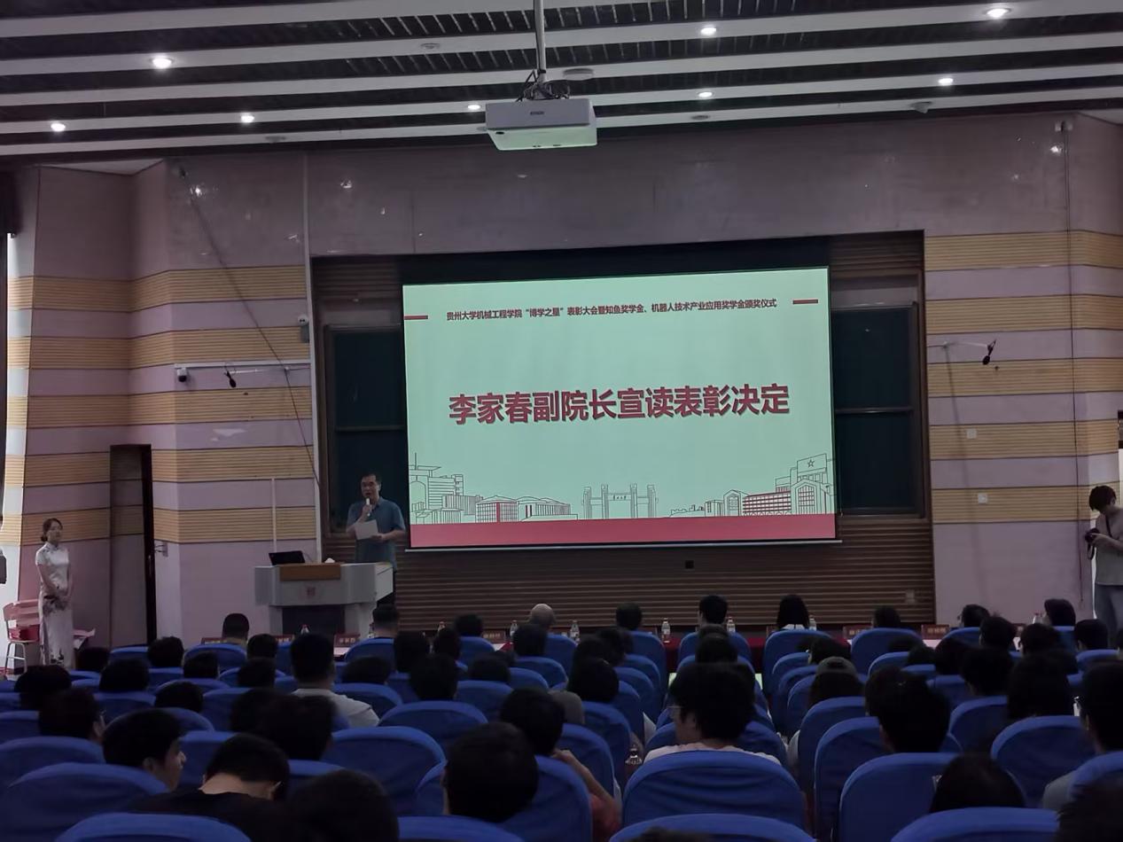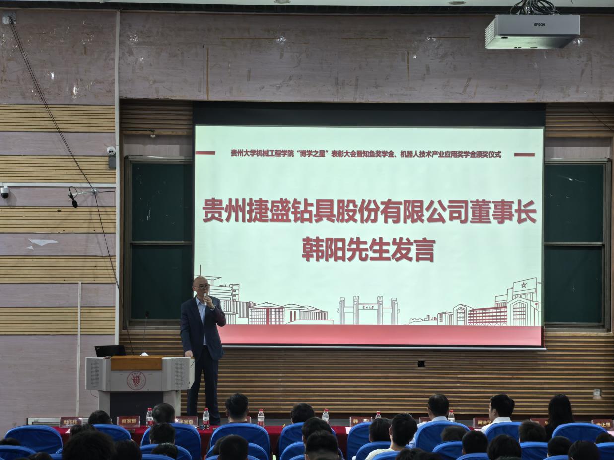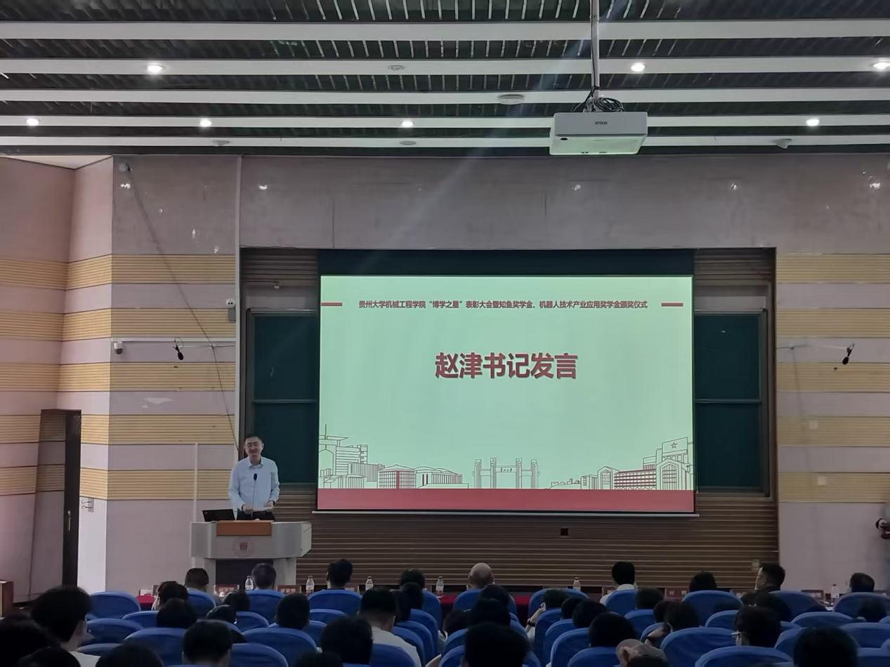 為表彰在學習成績、科研創新等方面有突出表現的畢業班同學,2024年6月27日下午,貴州大學機械工程學院“博學之星”表彰大會暨知魚獎學金、機器人技術產業應用獎學金頒獎儀式在西校區117報告廳舉行。貴州捷盛鉆具股份有限公司董事長韓陽、重慶安尼森智能科技有限公司技術總監周詩宇、貴州捷盛鉆具股份有限公司供應鏈總監安燕、國際業務二部部長周舒毅、企劃部主管田偉偉與機械工程學院黨委書記趙津、正處級組織員董蔚然、黨委副書記廖燁、副院長李家春、副院長唐正強出席會議,學生科全體輔導員、獲獎學生代表及兩百余名機械學子參會,大會由學生科副科長王嘉斌主持。