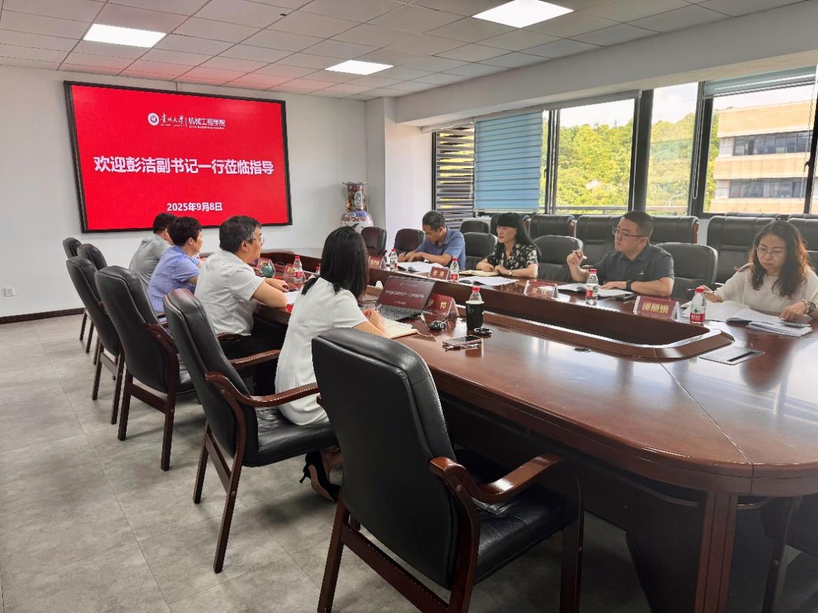 2025年9月8日上午,貴州大學黨委副書記彭潔、黨委學生工作部部長龍汶、副部長譚麗娟、黨委研究生工作部部長張小彬一行到機械工程學院指導調研“一站式”學生社區建設工作。學院院長馮毅雄、正處級組織員董蔚然、黨委副書記廖燁、副院長唐正強及“一站式”學生社區建設專班相關人員參加調研活動。