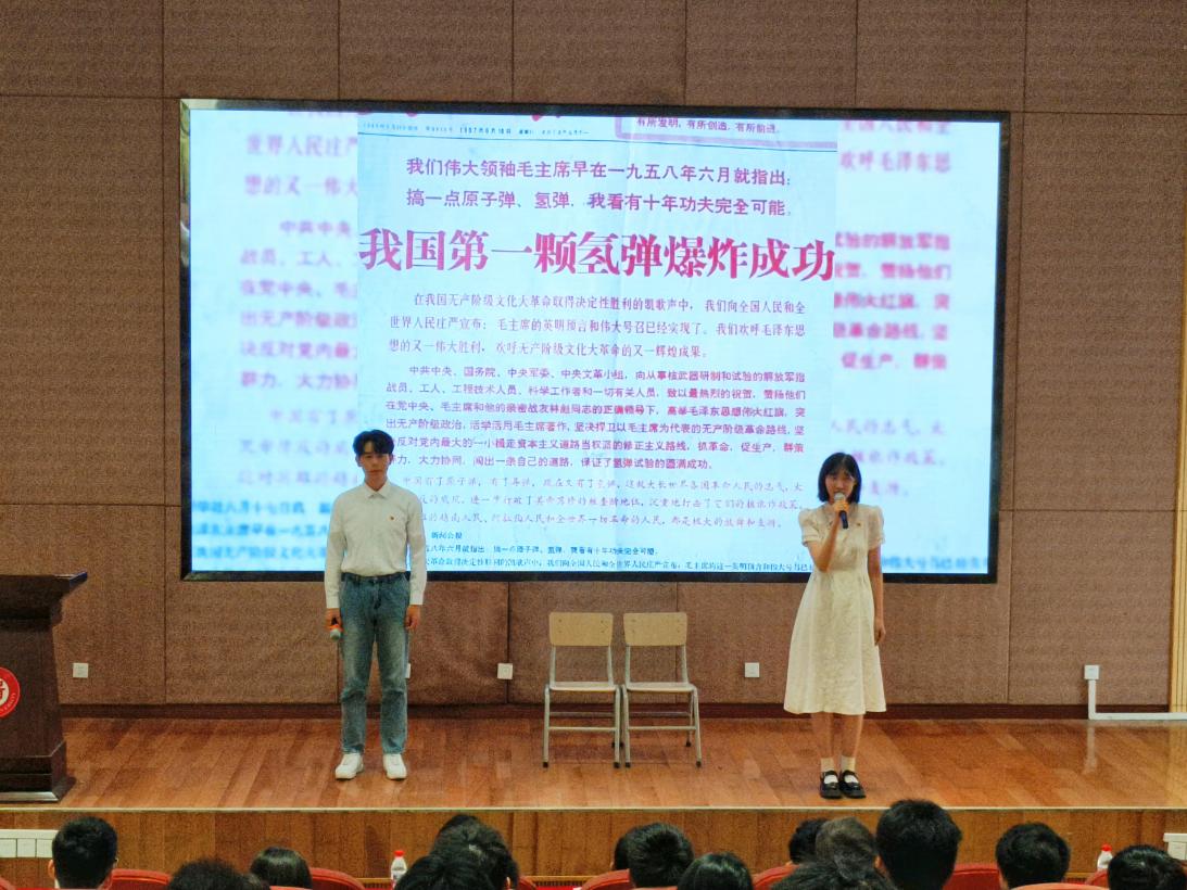 “三線精神”研學實踐隊,以跨越時空的尋訪,將新時代大學生感悟艱苦奮斗、無私奉獻、團結協作、勇于創新的三線精神用三重對話烙印在每個人的心中。《大漠青山寄深情》朗誦,以我國“兩彈元勛”鄧稼先“干驚天動地事,做隱姓埋名人”的感人事跡,以及三線建設者們扎根貴州默默無聞奉獻于我國航空事業的故事,呈現了老一輩建設者胸懷“國之大者”的生動場景,詮釋了馬蘭基地建設者和三線基地建設艱苦奮斗,頑強拼搏,無私奉獻的精神。